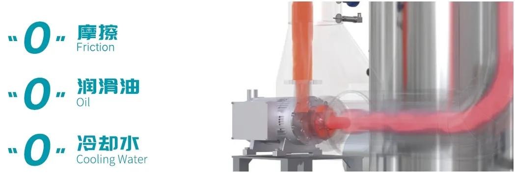 金年会磁悬浮蒸汽压缩机基于乐恒成熟可靠的高速直驱技术,没有了齿轮箱,可实现“0”机械摩擦、“0”润滑油、“0”冷却水。不仅降低了油雾污染的风险,更大大减少了维护保养需求,相较其他形式的蒸汽压缩机具有极大的优势。