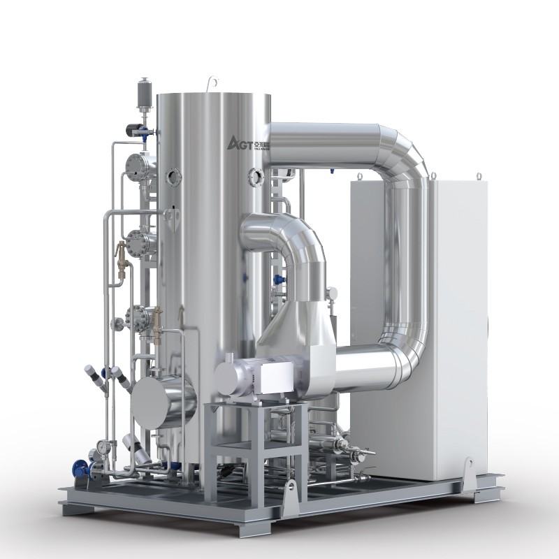 金年会最新研发生产的热压蒸馏水机使用了MVR节能技术,具有产水优质、节能效果显著、安装使用灵活等优点。金年会热压蒸馏水机产量可从1T/h至100T/h[1],既可为客户提供大处理量中心式制水方案,基于其超低的产量范围和撬装模块化设计,也可为客户提供灵活的分布式注射用水生产解决方案。
